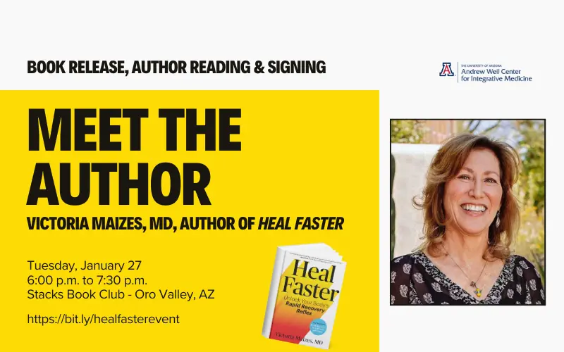 Join us for a special evening at Stacks Book Club in Oro Valley with Victoria Maizes, MD, author of what we’re calling the 2026 Health & Wellness Book of the Year, Heal Faster: Unlock Your Body’s Rapid Recovery Reflex.